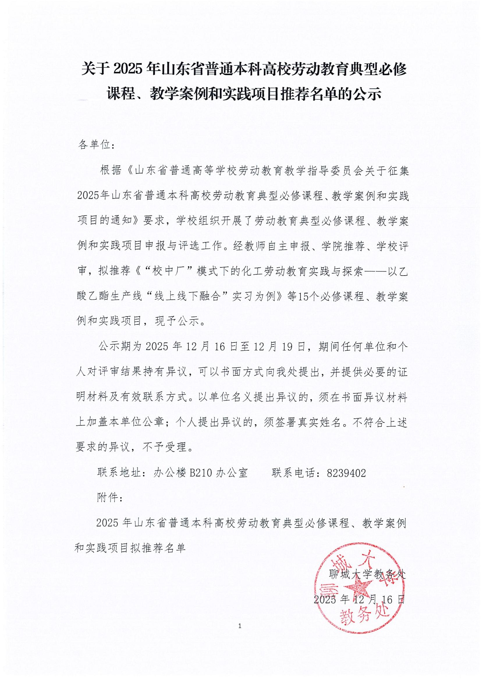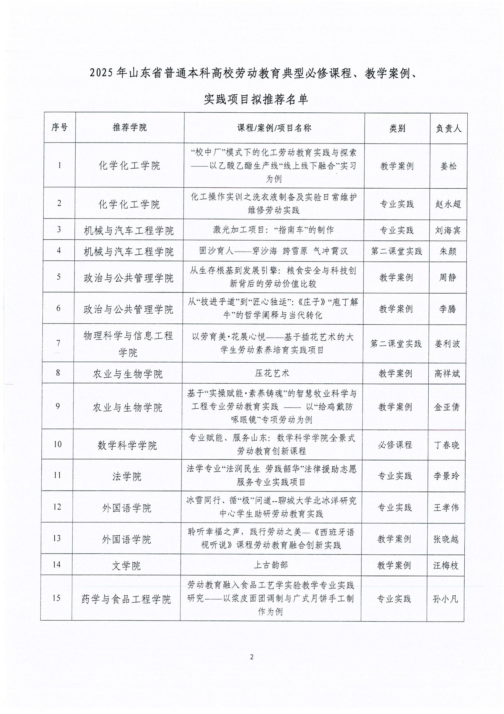 关于2025年山东省普通本科高校劳动教育典型必修课程、教学案例和实践项目推荐名单的公示