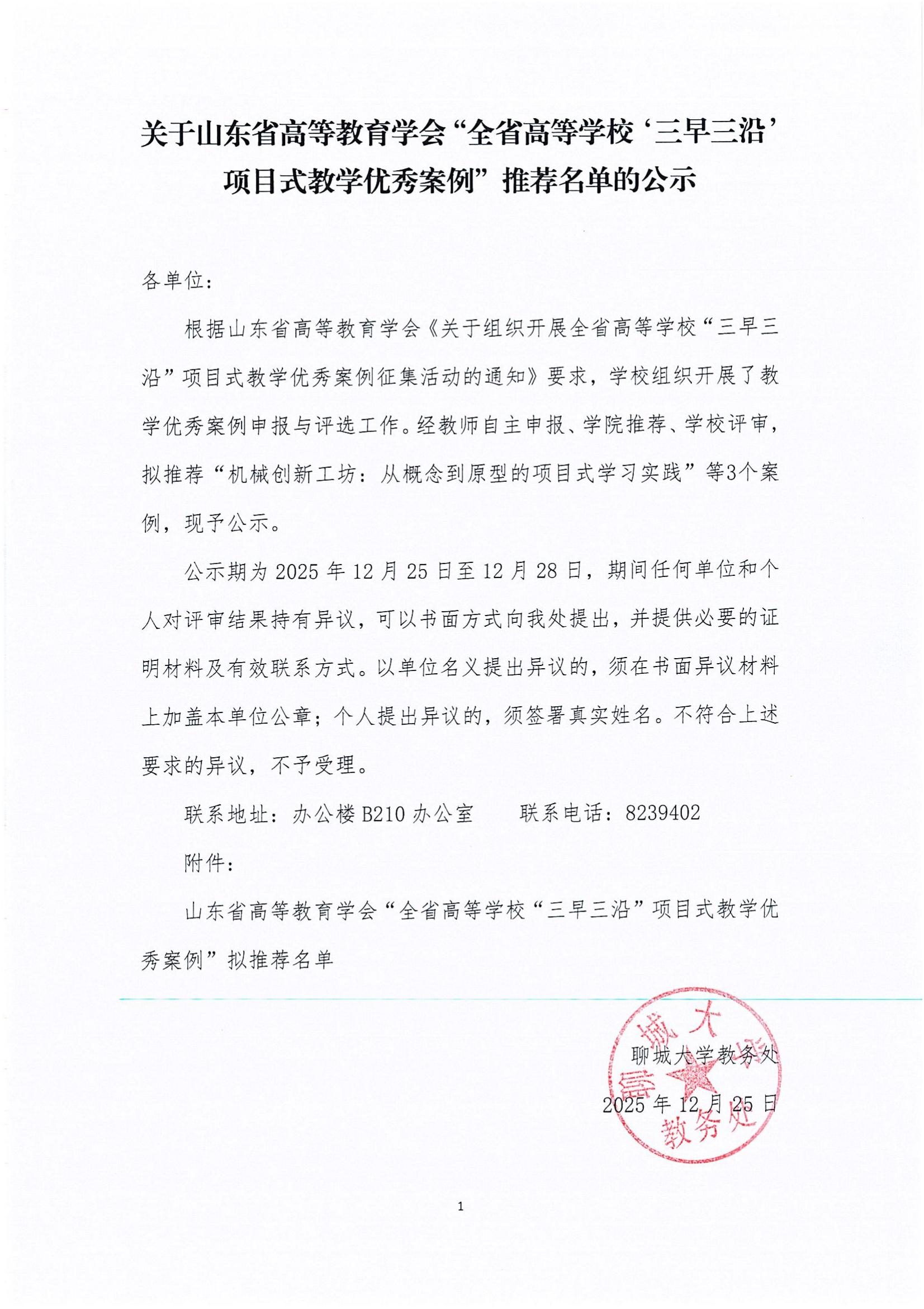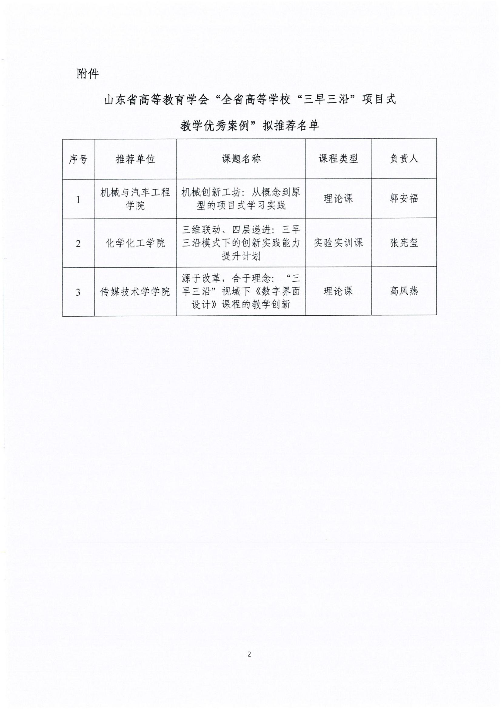 关于山东省高等教育学会“全省高等学校‘三早三沿’项目式教学优秀案例”推荐名单的公示