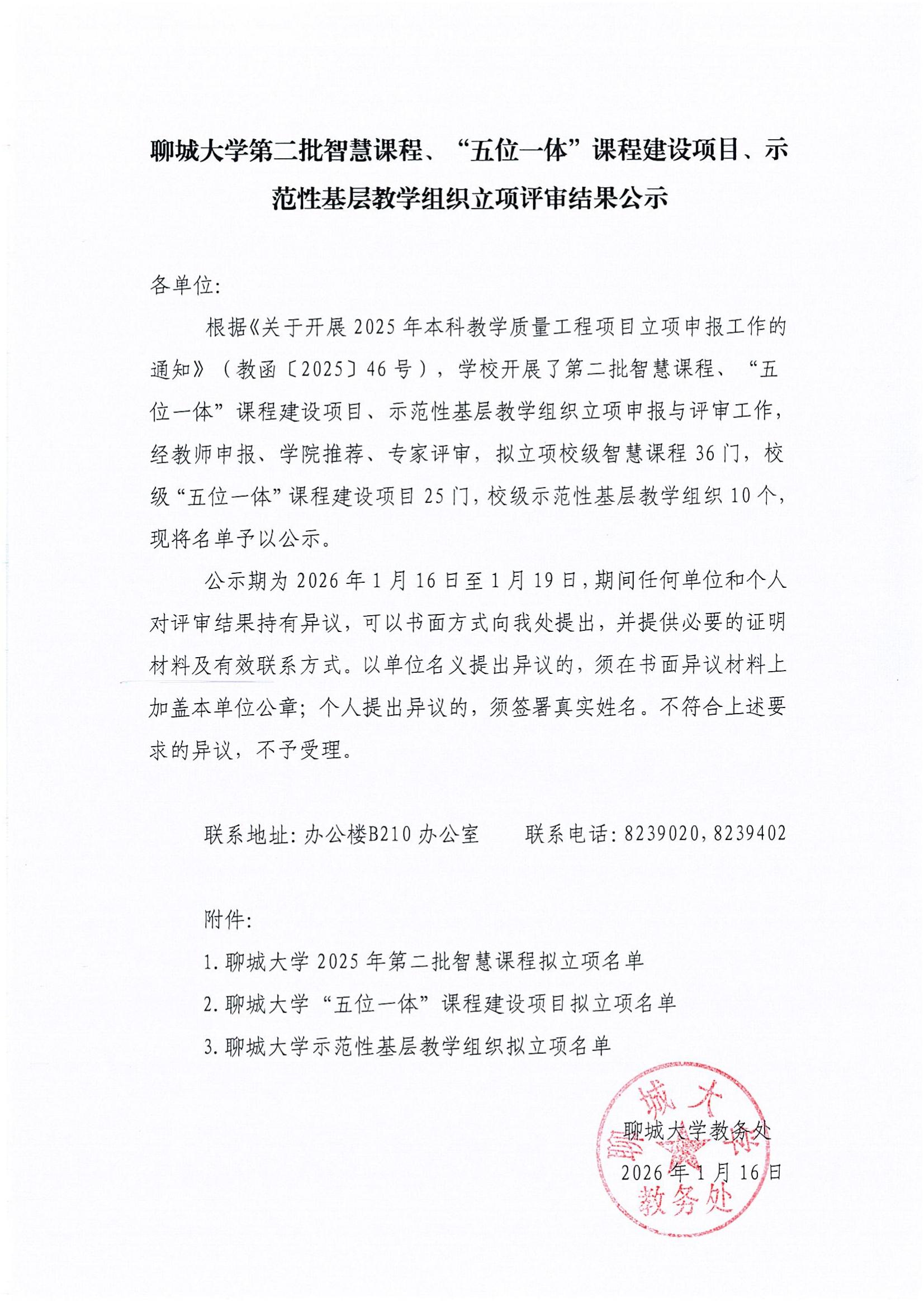 聊城大学第二批智慧课程、“五位一体”课程建设项目、示范性基层教学组织立项评审结果公示
