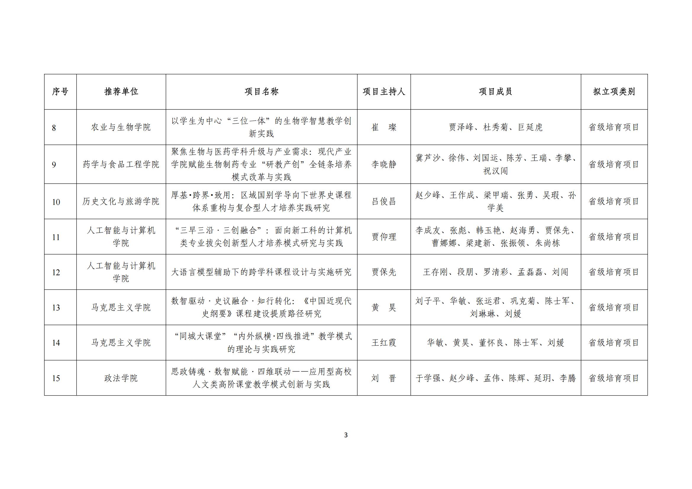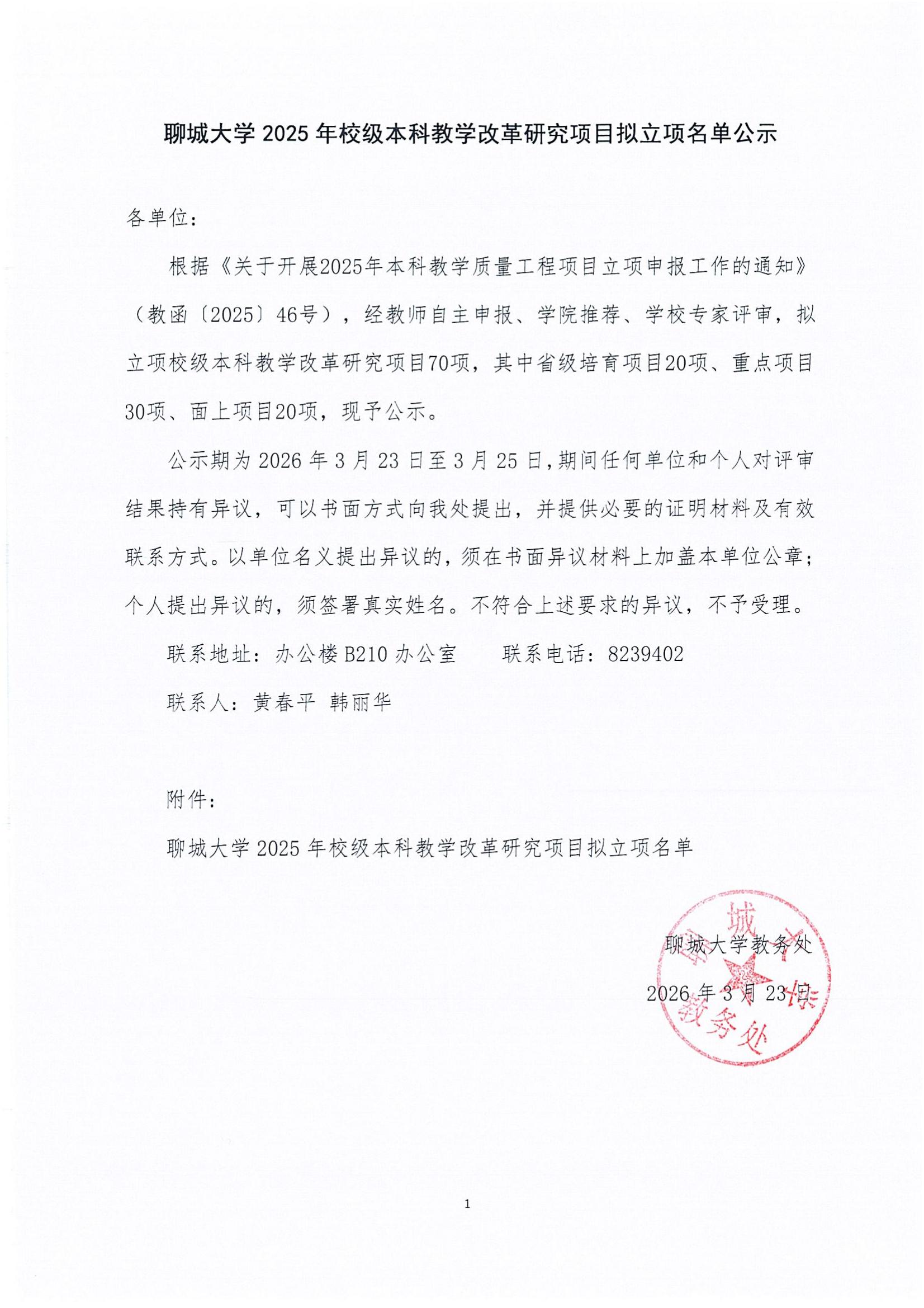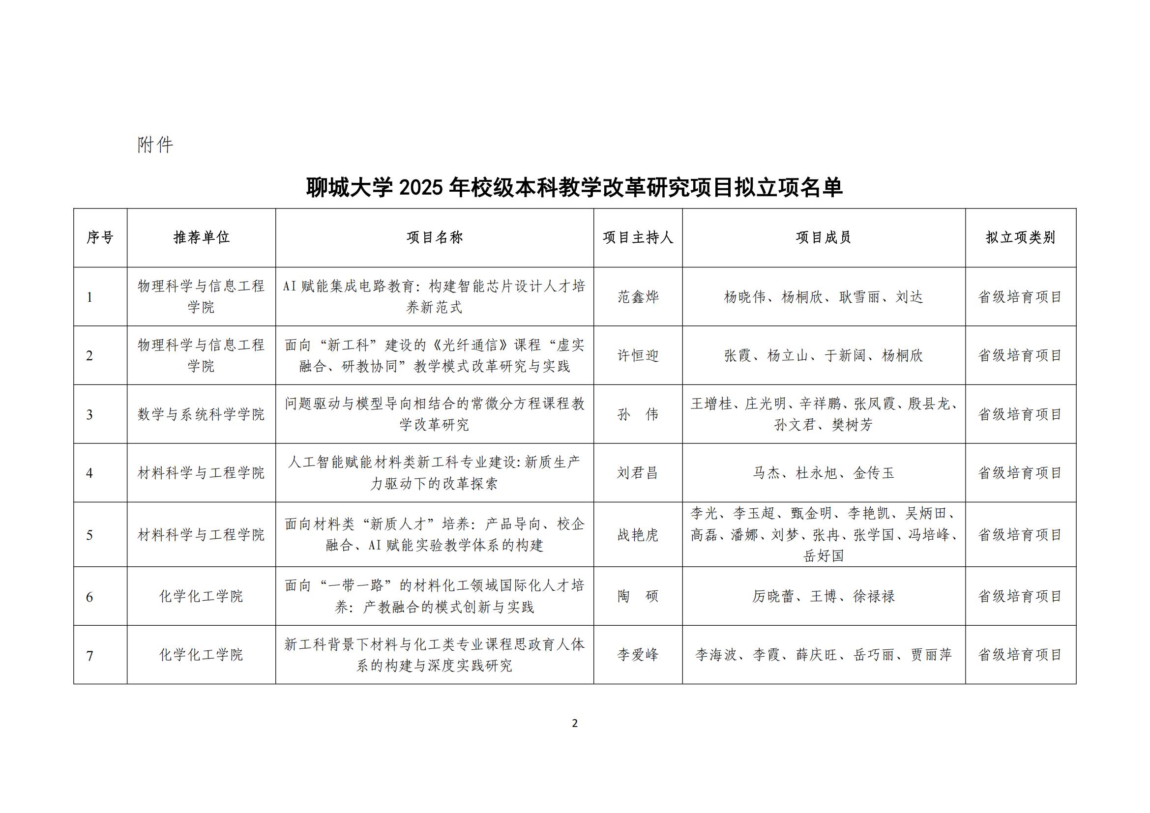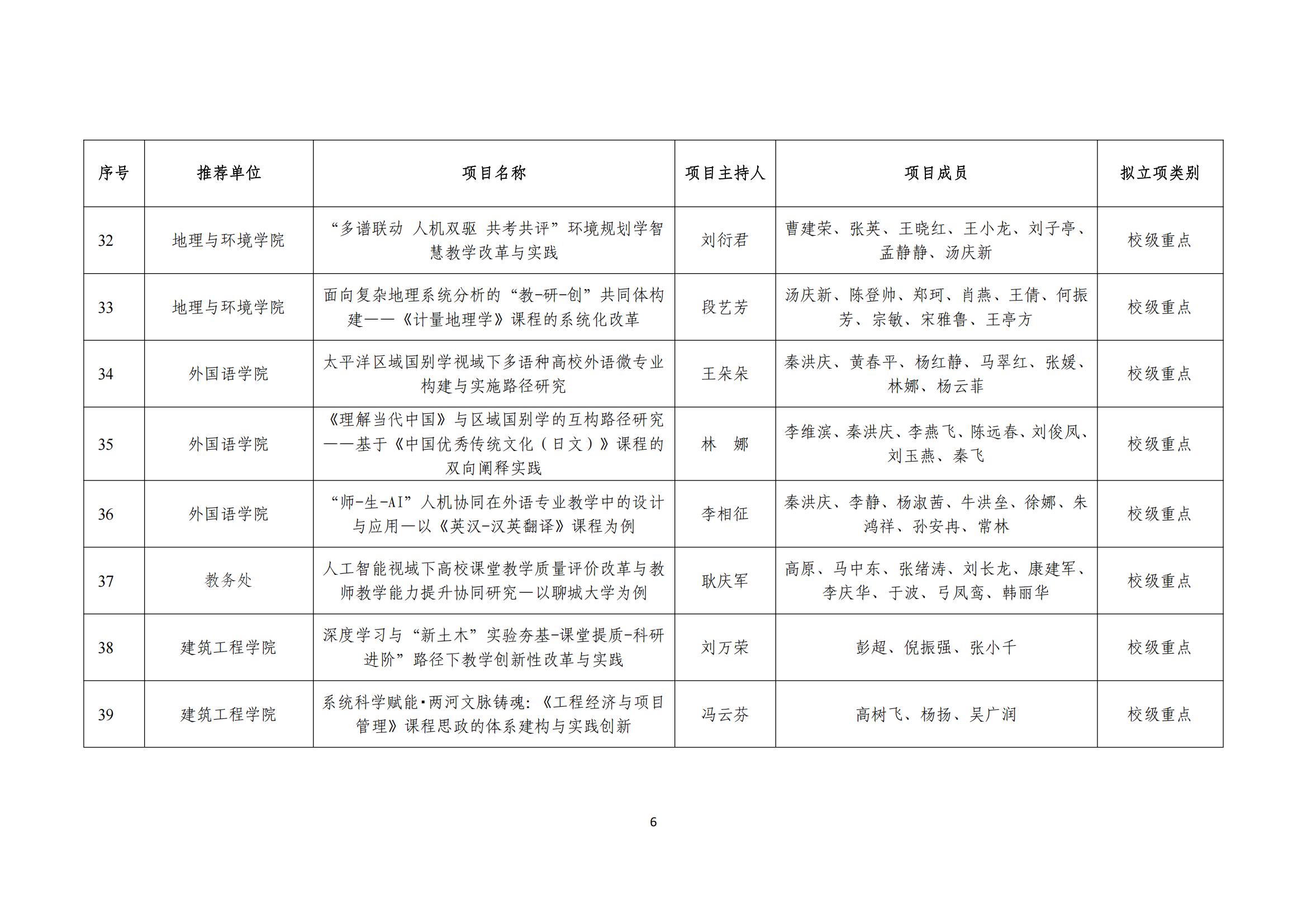 聊城大学2025年校级本科教学改革研究项目拟立项名单公示