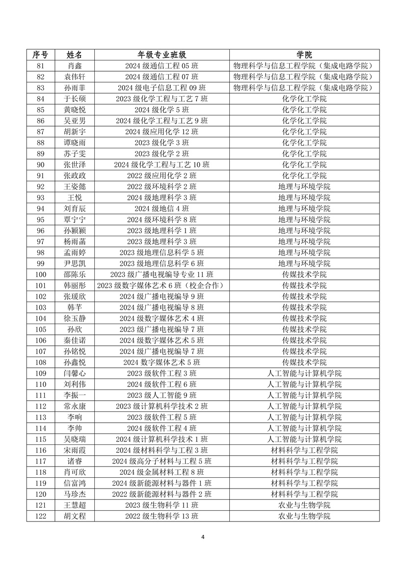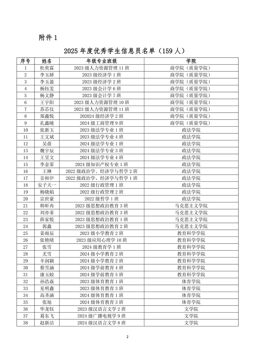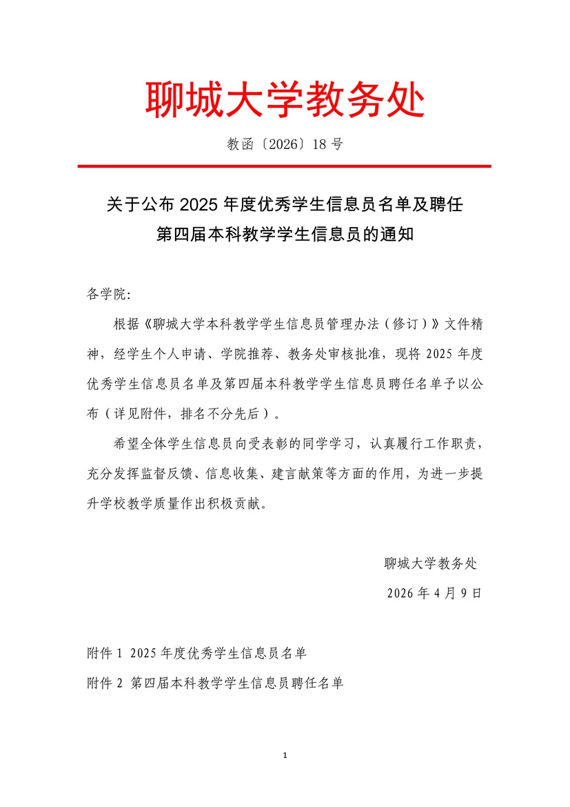 关于公布2025年度优秀学生信息员及聘任第四届本科教学学生信息员的通知